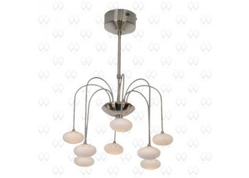 Материал арматуры:Металл, Материал плафона:Стекло, Цвет арматуры:Хром, Цвет плафона:Белый, Ширина (Диаметр), см:55, Высота, см:80, Площадь освещения, м.кв.:11, Количество ламп, шт:8, Тип цоколя:G4, Мощность, Вт:20W None
