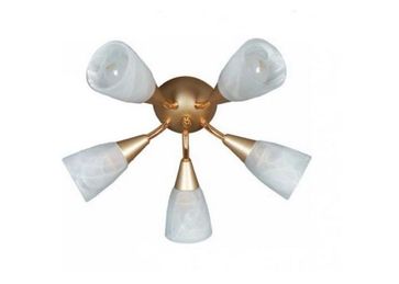 Мощность, Вт:60W, Тип цоколя:E14, Количество ламп, шт:5, Дополнительная информация:Серия Грация, Материал арматуры:Металл, Цвет арматуры:Золото матовое, Ширина (Диаметр), см:38, Высота, см:14, Площадь освещения, м.кв.:15, Материал плафона:Стекло, Цвет плафона:Белый None
