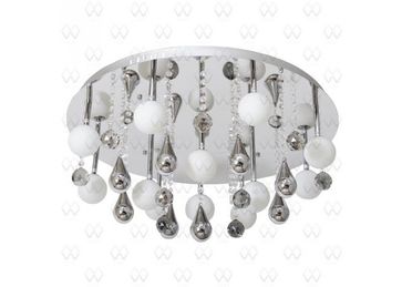 Материал арматуры:Металл, Материал плафона:Стекло, Цвет арматуры:Хром, Цвет плафона:Белый, Ширина (Диаметр), см:64, Высота, см:33, Площадь освещения, м.кв.:16, Количество ламп, шт:12, Тип цоколя:G4, Мощность, Вт:20W, Дополнительная информация:Декоративные элементы из стекла и хрусталя None