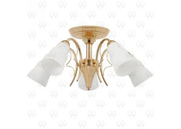Материал арматуры:Металл, Материал плафона:Стекло, Цвет арматуры:Золото, Цвет плафона:Белый, Ширина (Диаметр), см:55, Высота, см:25, Площадь освещения, м.кв.:15, Количество ламп, шт:5, Тип цоколя:E14, Мощность, Вт:60W None