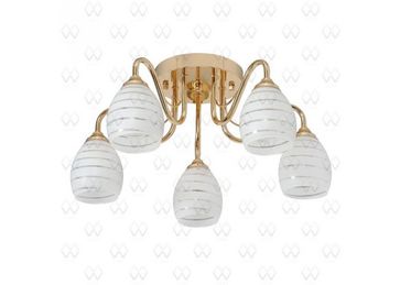 Материал арматуры:Металл, Материал плафона:Стекло, Цвет арматуры:Золото, Цвет плафона:Белый, Ширина (Диаметр), см:44, Высота, см:22, Площадь освещения, м.кв.:15, Количество ламп, шт:5, Тип цоколя:E14, Мощность, Вт:60W None