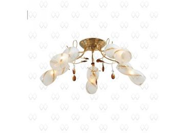Материал арматуры:Металл, Материал плафона:Стекло, Цвет арматуры:Золото, Ширина (Диаметр), см:68, Высота, см:23, Площадь освещения, м.кв.:15, Количество ламп, шт:5, Тип цоколя:E14, Мощность, Вт:60W, Дополнительная информация:Декоративные элементы из хрусталя None