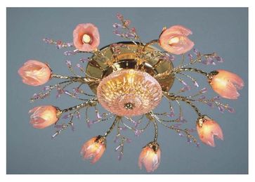 Мощность, Вт:35W, Тип цоколя:G9, Количество ламп, шт:11, Материал арматуры:Металл, Цвет арматуры:Золото, Ширина (Диаметр), см:70, Высота, см:25, Площадь освещения, м.кв.:26, Дополнительная информация:Декоративные элементы из цветного хрусталя, Материал плафона:Стекло, Цвет плафона:Розовый None