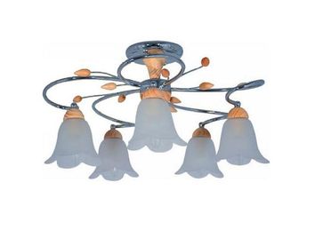Мощность, Вт:60W, Тип цоколя:E14, Количество ламп, шт:5, Дополнительная информация:Деревянные декоративные элементы (МДФ), Материал арматуры:Металл, Цвет арматуры:Хром, Ширина (Диаметр), см:58, Высота, см:30, Площадь освещения, м.кв.:15, Материал плафона:Стекло, Цвет плафона:Белый None