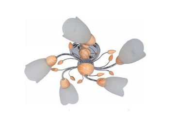 Мощность, Вт:60W, Тип цоколя:E14, Количество ламп, шт:5, Дополнительная информация:Деревянные декоративные элементы (МДФ), Материал арматуры:Металл, Цвет арматуры:Хром, Ширина (Диаметр), см:54, Высота, см:17, Площадь освещения, м.кв.:15, Материал плафона:Стекло, Цвет плафона:Белый None