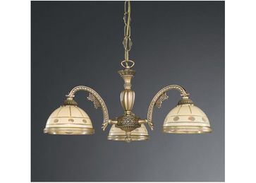 Материал арматуры:Латунь, Материал плафона:Стекло, Цвет арматуры:Старинная бронза, Цвет плафона:Золото, Ширина (Диаметр), см:54, Высота, см:32, Площадь освещения, м.кв.:12, Количество ламп, шт:3, Тип цоколя:E27, Мощность, Вт:60W, Дополнительная информация:Плафоны из муранского стекла ручной огранки None