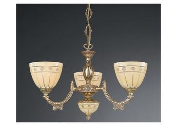 Материал арматуры:Латунь, Материал плафона:Стекло, Цвет арматуры:Старинная бронза, Цвет плафона:Золото, Ширина (Диаметр), см:52, Высота, см:40, Площадь освещения, м.кв.:12, Количество ламп, шт:3, Тип цоколя:E27, Мощность, Вт:60W, Дополнительная информация:Плафоны из муранского стекла ручной огранки None