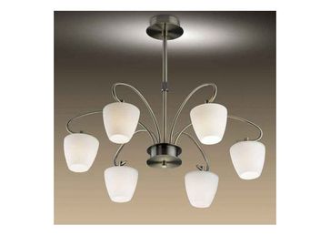 Люстра Sola на 6 рожков Цвет: Никель Плафон: Белое матовое стекло Светильники подходят для низких потолков