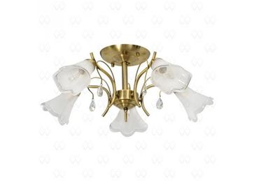 Материал арматуры:Металл, Материал плафона:Стекло, Цвет арматуры:Старинная бронза, Цвет плафона:Белый, Ширина (Диаметр), см:50, Высота, см:22, Площадь освещения, м.кв.:15, Количество ламп, шт:5, Тип цоколя:E14, Мощность, Вт:60W, Дополнительная информация:Декоративные стеклянные плафоны None