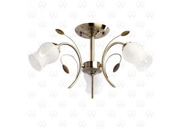 Материал арматуры:Металл, Материал плафона:Стекло, Цвет арматуры:Старинная бронза, Цвет плафона:Белый, Ширина (Диаметр), см:50, Высота, см:27, Площадь освещения, м.кв.:9, Количество ламп, шт:3, Тип цоколя:E14, Мощность, Вт:60W, Дополнительная информация:Декоративные стеклянные плафоны None