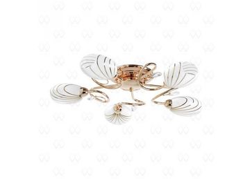 Материал арматуры:Металл, Материал плафона:Стекло, Цвет арматуры:Золото, Цвет плафона:Белый, Ширина (Диаметр), см:65, Высота, см:13, Площадь освещения, м.кв.:15, Количество ламп, шт:5, Тип цоколя:E14, Мощность, Вт:60W, Дополнительная информация:Плафоны с гальванизированным рисунком, хрустальные подвески None