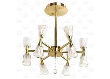 Материал арматуры:Металл, Материал плафона:Стекло, Цвет арматуры:Золото, Цвет плафона:Белый, Ширина (Диаметр), см:42, Высота, см:45, Площадь освещения, м.кв.:32, Количество ламп, шт:12, Тип цоколя:G9, Мощность, Вт:40W, Дополнительная информация:Высота регулируется None