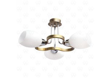 Материал арматуры:Металл, Материал плафона:Стекло, Цвет арматуры:Старинная бронза, Цвет плафона:Белый, Ширина (Диаметр), см:50, Высота, см:25, Площадь освещения, м.кв.:6, Количество ламп, шт:3, Тип цоколя:E27, Мощность, Вт:40W, Дополнительная информация:Декоративные элементы цвета хрома None