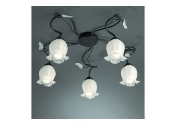 Материал арматуры:Металл, Материал плафона:Стекло, Цвет арматуры:Черный, Цвет плафона:Белый, Ширина (Диаметр), см:49, Высота, см:23, Длина, см:49, Площадь освещения, м.кв.:15, Количество ламп, шт:5, Тип цоколя:E14, Мощность, Вт:40W, Дополнительная информация:Декоративные элементы из стекла None