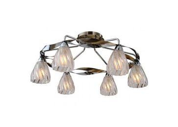 Материал арматуры:Металл, Материал плафона:Стекло, Цвет арматуры:Хром/Античная бронза, Ширина (Диаметр), см:61, Высота, см:29, Количество ламп, шт:6, Тип цоколя:E14, Мощность, Вт:60W None