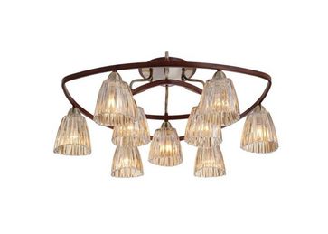 Материал арматуры:Металл, Материал плафона:Стекло, Цвет арматуры:Античная бронза/Орех, Ширина (Диаметр), см:69, Высота, см:29, Количество ламп, шт:8, Тип цоколя:E14, Мощность, Вт:60W None