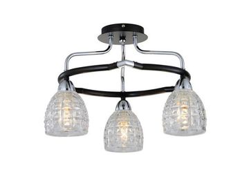 Материал арматуры:Металл, Материал плафона:Стекло, Цвет арматуры:Хром/Венге, Ширина (Диаметр), см:45, Высота, см:26, Площадь освещения, м.кв.:6, Количество ламп, шт:3, Тип цоколя:E14, Мощность, Вт:60W None