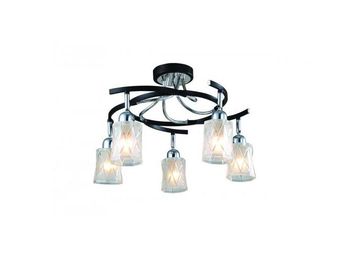 Материал арматуры:Металл, Материал плафона:Стекло, Цвет арматуры:Хром/Черный, Ширина (Диаметр), см:46, Высота, см:31, Количество ламп, шт:5, Тип цоколя:E14, Мощность, Вт:40W None