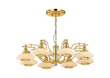 Материал арматуры:металл/стекло, Цвет арматуры:золотой, Ширина (Диаметр), см:84, Высота, см:57, Количество ламп, шт:8, Тип цоколя:E14, Мощность, Вт:40W None