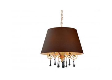 Материал арматуры:Металл, Материал плафона:Ткань, Цвет арматуры:Золото, Цвет плафона:Коричневый, Ширина (Диаметр), см:64, Высота, см:63.5, Площадь освещения, м.кв.:18, Количество ламп, шт:5, Тип цоколя:E14, Мощность, Вт:60W, Дополнительная информация:Стеклянные подвески None