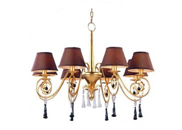 Материал арматуры:Металл, Материал плафона:Ткань, Цвет арматуры:Золото, Цвет плафона:Коричневый, Ширина (Диаметр), см:89, Высота, см:65, Площадь освещения, м.кв.:30, Количество ламп, шт:8, Тип цоколя:E14, Мощность, Вт:60W, Дополнительная информация:Стеклянные подвески None