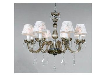 Мощность, Вт:40W, Тип цоколя:E14, Количество ламп, шт:8, Дополнительная информация:Декоративные элементы из прозрачного хрусталя, Материал арматуры:Металл/Стекло, Цвет арматуры:Бронза/Хром, Ширина (Диаметр), см:75, Высота, см:65, Площадь освещения, м.кв.:20, Материал плафона:Ткань, Цвет плафона:Белый с рисунком флористика None