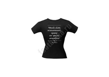 Чтобы быть незаменимой, нужно все время меняться. /Коко Шанель/ ПЕЧАТЬ НА СПИНЕ! Модель футболки на фото: Футболка женская приталенная “Lady”. Плотность 190гр. Материал хлопок 95%, эластан 5%. Размеры XS(42)-S(44)-M(46)-L(48)-XL(50). Способ нанесения: термоаппликация (флекс). Стирать в стиральной машине при t до 40С. Перед стиркой вывернуть наизнанку. По изображению не гладить! None Есть доставка.
