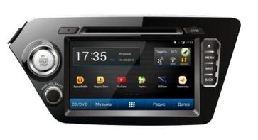 Мультимедийная штатная магнитола KIA Rio, с навигацией мощность 4x45 Вт, тюнер (FM, СВ), CD, DVD, MP3, MPEG4, WMA, JPEG, поддержка iPod, Bluetooth, ТВ-тюнер, 2din встроенный GPS приемник, USB, многоцветный дисплей, диагональ: 7, None