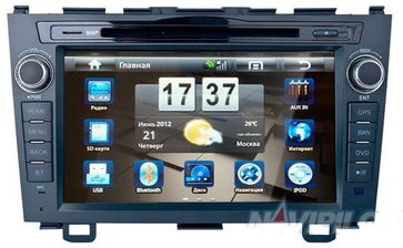 Магнитола honda с навигацией, 4x52 Вт, тюнер (FM, СВ), CD, DVD, MP3, MPEG4, WMA, JPEG, Bluetooth, ТВ-тюнер, встроенный GPS-приемник, разъем USB, 2 din многоцветный дисплей, сенсорный, в штатное место None