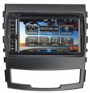 Магнитола SSANG YONG, 4x45 Вт, тюнер (FM, СВ), CD, DVD, MP3, MPEG4, WMA, JPEG, Bluetooth, ТВ-тюнер, встроенный GPS приемник, разъем USB, многоцветный дисплей 7", в штатное место Actyon 2011-13 None