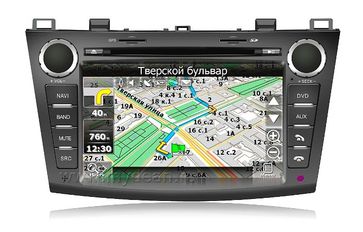 Штатная магнитола Mazda 3 ( Мазда), с gps, 4x52 Вт, CD, DVD, MP3, MPEG4, WMA, JPEG, Bluetooth, ,GPS-приемник, разъем USB, многоцветный дисплей, диагональ: 7", сенсорный, 2 din , None