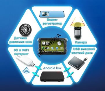 Система представляет собой комплект из 2-х взаимодействующих устройств:головного устройства(магнитола на Windows CE) и блока на Android 4.4.2. В самой магнитоле реализованы радио, DVD, настройка звука, громкая связь по Bluetooth (синхронизация с телефоном). А андроид-блок используют для навигации, андроид-приложений, интернета и мультимедиа.