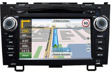 Мультимедийная штатная магнитола Хонда, мощность мультимедийной 2 din магнитолы 4x50 Вт, тюнер (FM, СВ), CD, DVD, MP3, MPEG4, WMA, JPEG, поддержка iPod, Bluetooth, ТВ-тюнер, GPS, разъем USB, многоцветный дисплей, диагональ: 7", сенсорный None