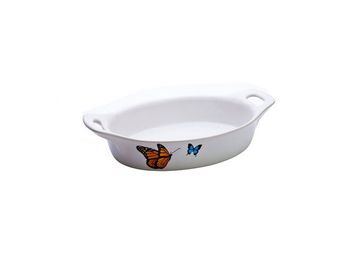 Форма керамическая овальная, размеры: 30х18х4,6 см, рабочая температура от -20 до +400°С, цвет: белый с принтом бабочек None