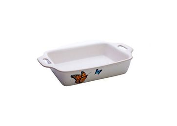 Форма керамическая прямоугольная, размеры: 36х22х5,5 см, рабочая температура от -20 до +400°С, цвет: белый с принтом бабочек None