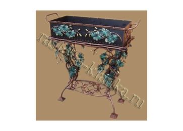 Кованый мангал на ножках. Украшен элементами в виде листьев. По бокам размещены ручки для транспортировки. Под топкой расположена удобная просторная полочка для дров - дровница. None