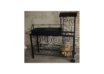 Кованый мангал на ножках "Паровозик". Оснащен вертелом, столешницей под кухонную утварь и удобной вместительной дровницей под топкой. None