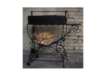 Кованый мангал на ножках "Удачный". Оснащен вертелом, столешницей под кухонную утварь и удобной вместительной дровницей None