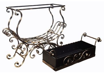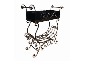 Кованая дровница позволяет хранить определенный запас дров для мангала.