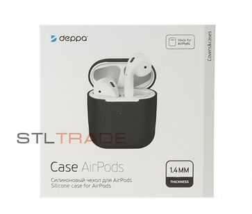 - Силиконовый чехол для AirPods, черный, Deppa по выгодной цене 350 р. руб.;