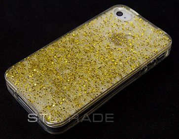 Силиконовый чехол с блестками для iPhone 4 жёлтый в тех.уп.