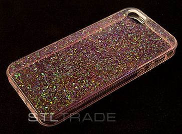 Силиконовый чехол с блестками для iPhone 5 розовый в тех.уп.