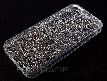 Силиконовый чехол с блестками для iPhone 5 серебристый в тех.уп.