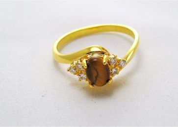 Закажите кольцо тигровый глаз 1 камень 6 цирконов у компании Lotus в Москве на портале Alloy: