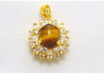 кулон тигровый глаз двойные цирконы
