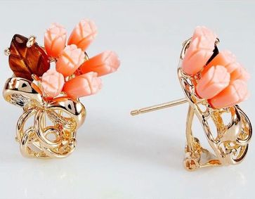 - Серьги с кораллом и тигровым глазом "6 роз лист бант" по выгодной цене 1 180 р. руб.;