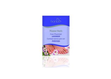 Солевая ванна для ног «Лаванда». Релаксация. Foot PhytoSalt Lavender Master Herb TianDe Описание Эфирное масло лаванды успокаивает, избавляет от тяжести в ногах, размягчает загрубевшую кожу. Морская соль нормализует потоотделение. Благоухание лаванды прекрасно снимает стресс.