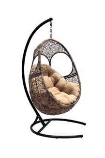 Подвесное кресло выполнено на стальном каркасе в комбинации с плетением из искусственного ротанга коричневого цвета, 5 мест в упаковке, изготовлено в Китае.