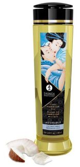 Массажное масло для тела Adorable с ароматом кокоса. 100% натуральные масла холодного отжима, с витамином Е (антиоксидант), без жирных остатков, не забивает поры, нет минерального или животного масла. <br><br> Мягкость и шелковистость этого масла с приятным скользящим эффектом на коже вызывает ощущение полного восторга. Сексуальное желание нарастает и вы готовы к любви. Получите взаимное удовольствие от чувственного эротического массажа с использованием нашей эксклюзивной смеси масел холодного отжима, тщательно отобранных за свои стимулирующие и придающие энергию свойства.<br><br> Масло легко скользит по коже, не оставляя жирных ощущений, в то время как различные экзотические ароматы поднимут ваши чувства до вершин возбуждения. Идеально подходит для того, чтобы насладиться расслабляющим массажем или сделать его, совместив с обволакивающими обольстительными ласками.<br><br> Это на 100 % натуральное масло с упоительным ароматом, легко скользит по коже, не оставляя жирной пленки. Запах массажному маслу придают эфирные масла и отдушки, что в отличие от большей части другой продукции SHUNGA, ароматизированной вкусовыми добавками, делает его несъедобным. None