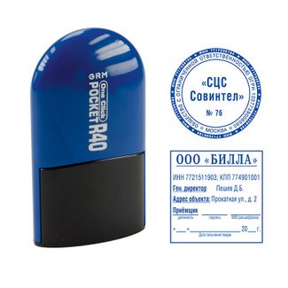 Закажите Печать д. 40 мм, на карманной оснастке - GRM Pocket R40 ONE CLICK, синий корпус у компании expressstamp в Москве на портале Alloy: